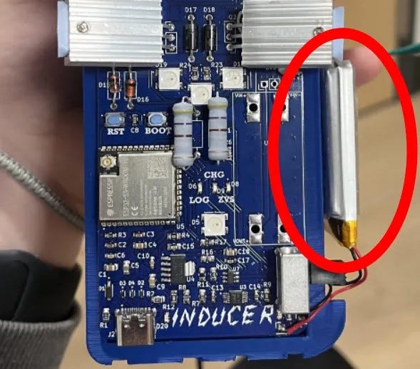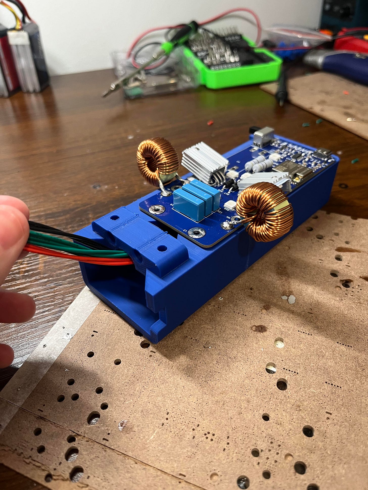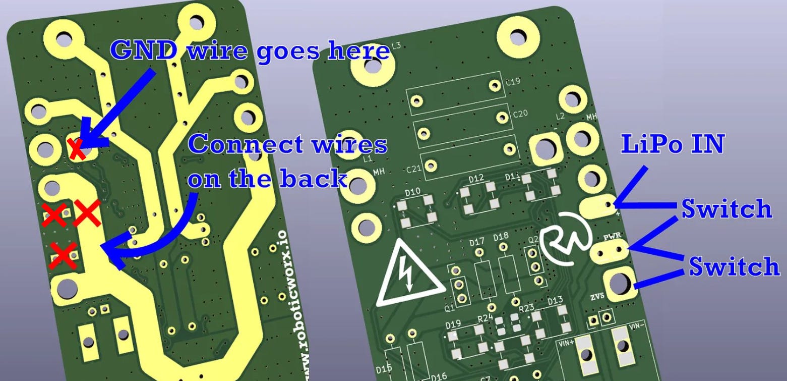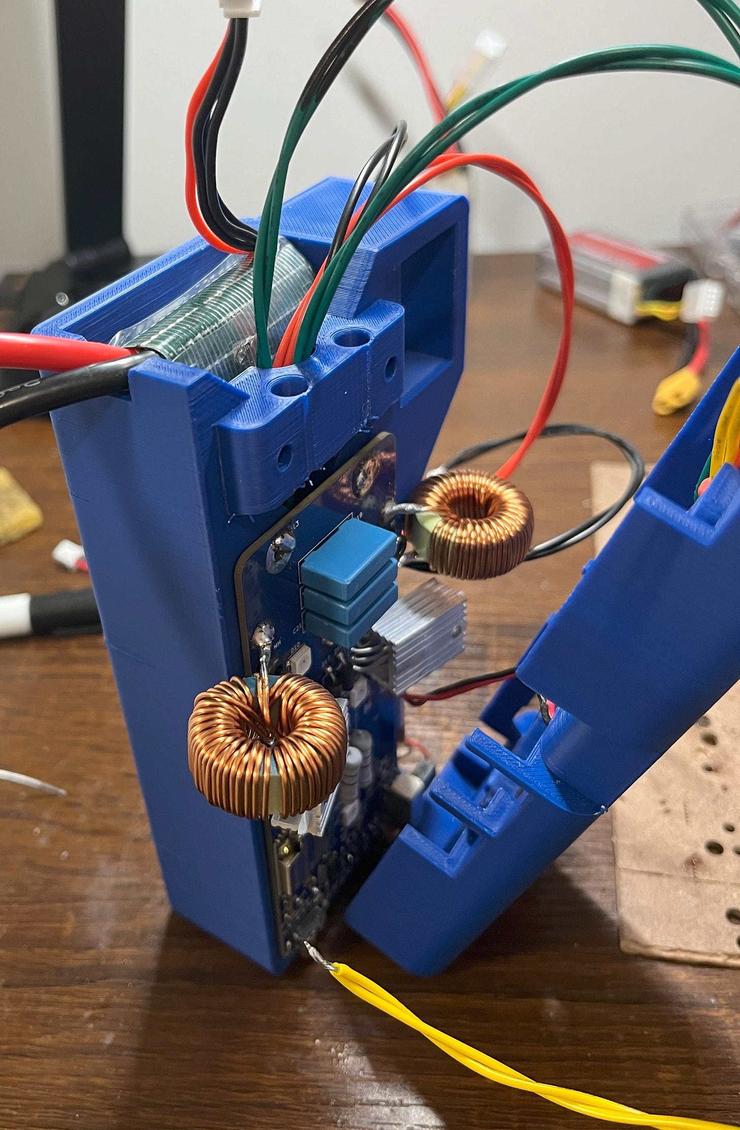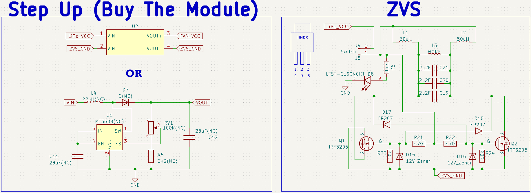 After days of experimentation, to make this circuit work I found it best to completely isolate the high and low power sections (the ZVS and RGB logic). I originally just wanted to have one built-in 3S charger for the main 3S LiPo, then use that to power the logic and RGB LEDs in addition to the ZVS circuit. Theoretically, this can be done as 12V isn’t that high. However, due to the unique nature of the high-power oscillator, I ran into problems (mostly involving me frying the ESP32-S3 again and again). I was able to make it work for a little while but it lacked consistency. By isolating the two, you lose the perk of being able to charge/monitor the main battery but it furthers the lifespan of the Inducer significantly. In the end, I believe this is a better trade-off.