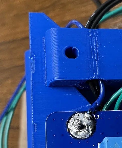 To mount it to the PCB, I just turned up my soldering iron and flooded a good amount onto the coil. Make sure that the coil is through the 3D-printed part before you do this!
