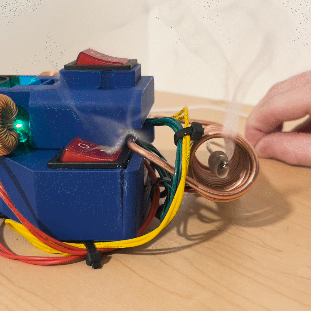Important note: I don’t recommend ever having this or the induction heater on for any more than 10 seconds at a time (+ 10 seconds to cool off)! If you exceed this, the components may burn out and you could be left with a firey burst on your circuit board. (It’s happened to me!)
