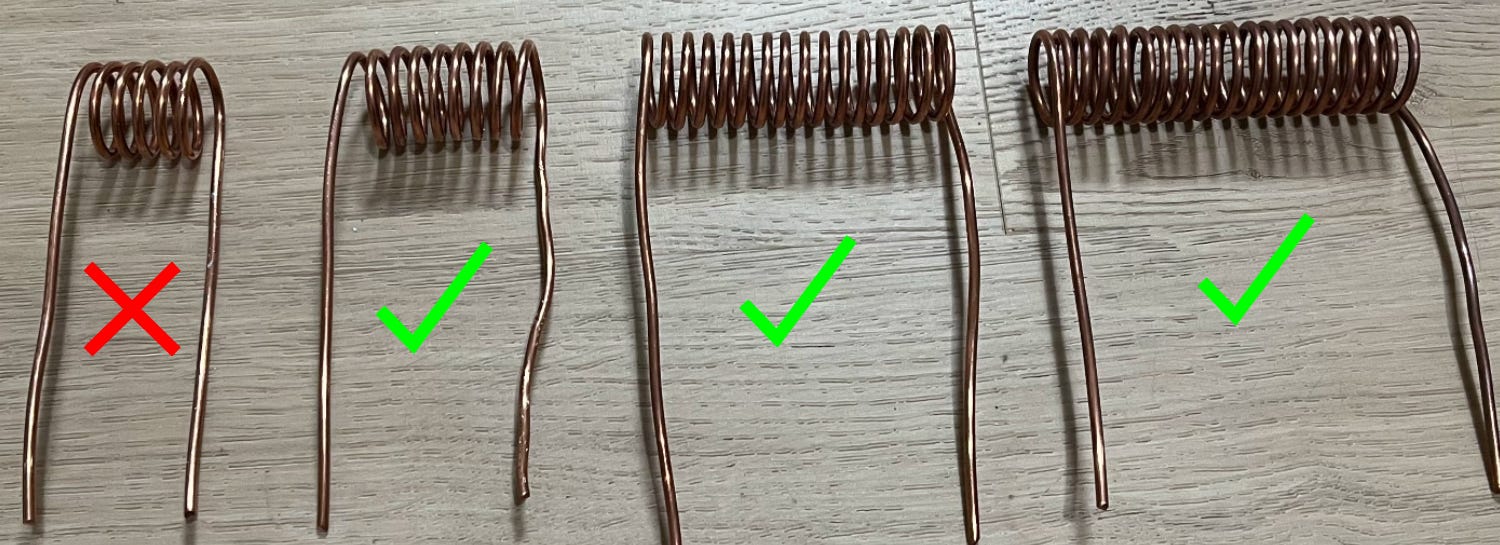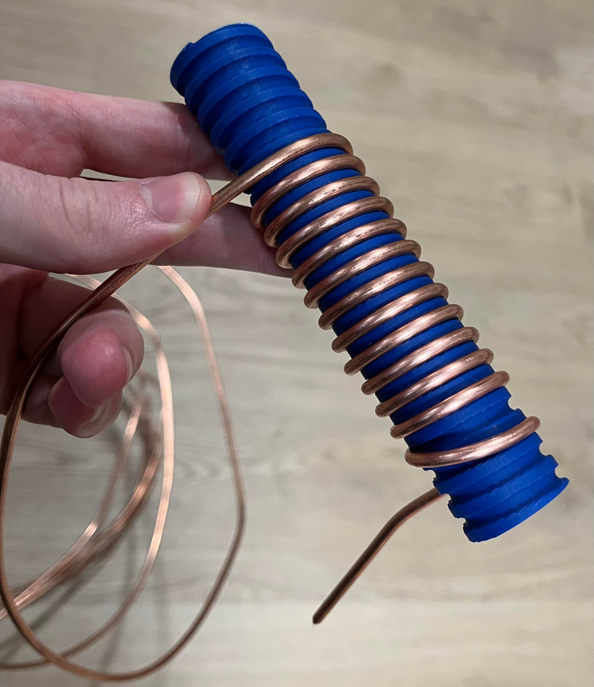 Looking sharp! I wrapped mine quite a few times but didn’t really see much of a change in efficiency so long as it was between 8 and 20 turns. So wrap it around however many works for you! The final coil I ended up going with was ~16 turns.