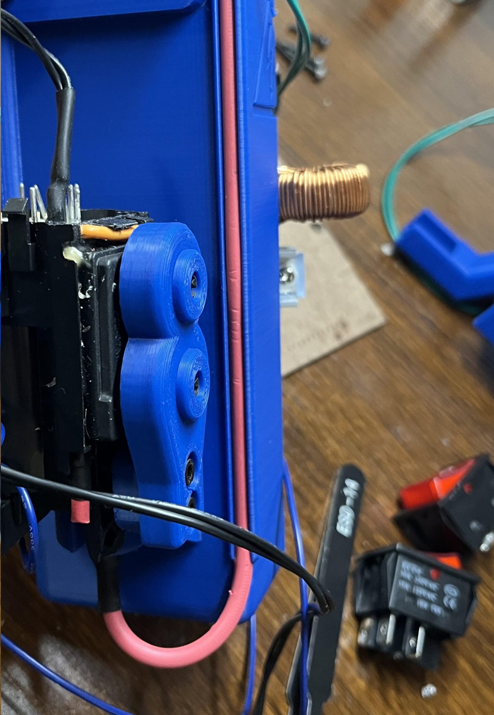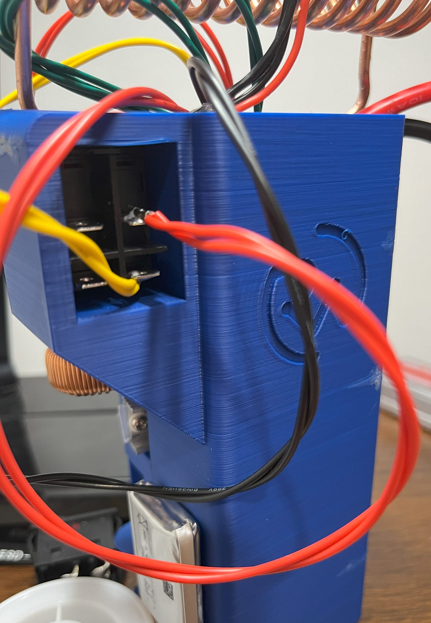The only other difference is mounting the ZVS switch. To mount the one for the induction heater, you should do the same thing as explained in the other portion but through the piece on the side instead. No need for a handle on this one since there’s no bulky transformer on the back.
