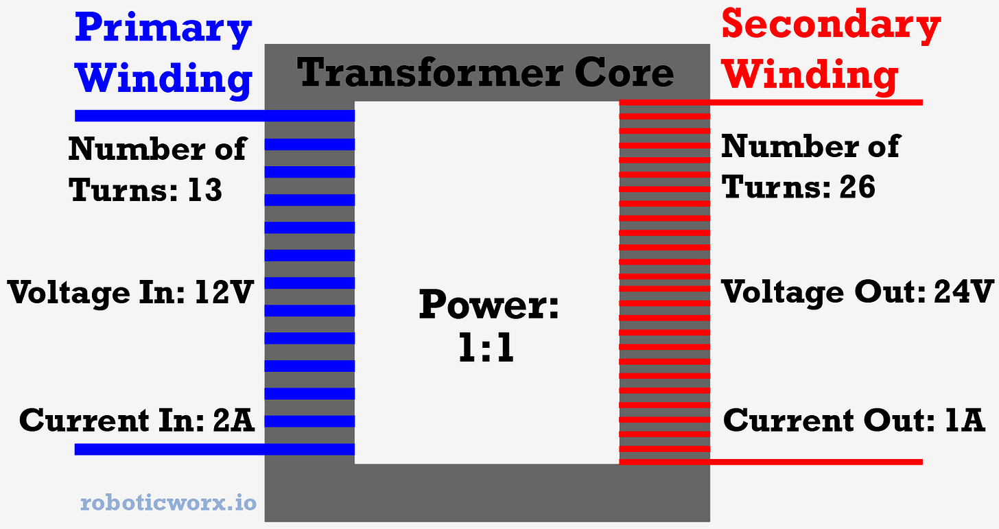 In high-voltage generators, we are able to use this concept of electromagnetic induction to create huge voltages by varying the number of turns of wire from one coil to the other. If we then pass AC through one, it’ll induce electricity from one to the other. The new voltage will be proportional to the ratio of turns of wire between them.