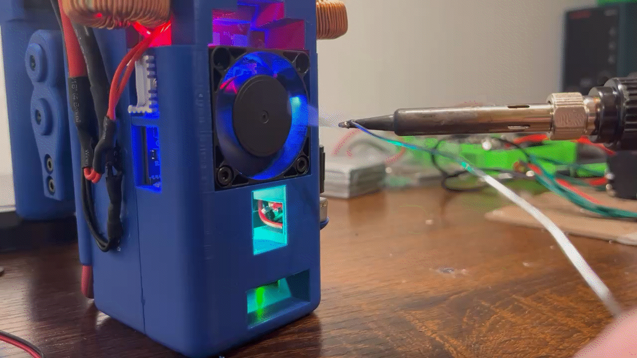 In addition to this, the Inducer has a built-in BLDC fan with knob-based speed control to find the perfect balance between noise and efficiency, leading to quick cooling across the high-power MOSFETs. This gives it a longer use time which is especially helpful in induction heating. This also surprisingly works as an awesome fume extractor, though, I recommend using a filter to protect the PCB over long durations. It shoots all the fumes out the side away from your face!