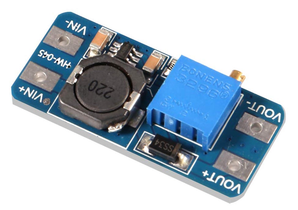 The last bit of our circuit is the step-up module, which just boosts the voltage of the fan to make it spin faster. I modified mine to use an external potentiometer, which essentially turns it into a kind of speed controller. I’ll go into how I did that in the assembly section. You could technically build your own for this, but I’d probably recommend just buying the module off Amazon.